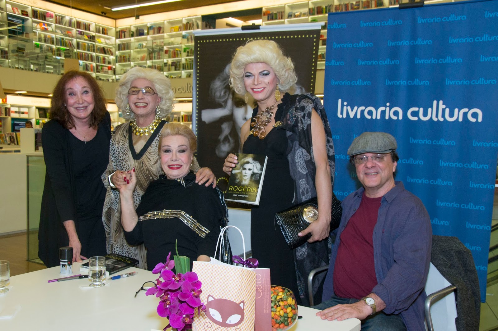 Longas filas no lançamento nacional do livro de Rogéria, em São Paulo Momento de glamour. Fotos: Daniel Marques Dezenas de personalidades brasileiras, entre atores, fotógrafos, jornalistas, colunistas sociais e muitos admiradores foram os destaques na noite desta terça feira, na Livraria Cultura, em São Paulo, quando a atriz e cantora brasileira ROGÉRIA, considerada o "travesti da família brasileira" comandou o lançamento do livro de Márcio Paschoal, "Rogéria, uma mulher e mais um pouco". Imensas filas se formaram na livraria, ao mesmo tempo em que muitos curiosos procuravam a Diva para registrar selfies ou até para gravarem pequenos vídeos da primeira noite de lançamento. A festa aconteceu no Shopping Iguatemi, por mais de quatro horas e nem o tempo chuvoso de São Paulo encobriu o brilho da concorrida noite. Foto: Daniel Marques O próximo lançamento acontece no Rio de Janeiro, na Livraria da Travessa, no Shopping Leblon, nesta quinta-feira, dia 27, à partir das 19h. Foto: Daniel Marques Entre os muitos nomes que podiam ser vistos nas filas para fotos e autógrafos estavam a jornalista e apresentadora Claudia Matarazzo, Nany People, Jason Pizani, cabeleireiro dela em São Paulo, Darbi Daniel, Salete Campari, o chef de cuisine Elias Ferreira de Souza, o mago das celebridades, o Guru Anderson, Miss Biá, o jornalista, pesquisador e escritor, Renato Fernandes, da revista Joyce Pascovitch e a representante da LBV, Renata Tabach Paiva, que recebeu um livro autografado por Rogéria e o autor Márcio Paschoal, para ser encaminhado ao diretor presidente da Legião da Boa Vontade, José de Paiva Netto. Foto: Daniel Marques Uma Longa História A história de Rogéria mais parece ficção. Nascida Astolfo Barroso Pinto, teve de enfrentar grandes desafios para se afirmar como homossexual, ícone do transformismo e, acima de tudo, artista. Foto: Daniel Marques Movida por uma enorme paixão pela arte e pela vida, conquistou, ao longo de mais de 50 anos de carreira, seu espaço no teatro, no cinema e na televisão, consagrando-se como uma personagem irresistível, quase mítica: Rogéria, o travesti da família brasileira. Neste livro, Marcio Paschoal reconstrói a intensa trajetória de Astolfo-Rogéria desde seus primeiros passos como maquiador das cantoras da era do rádio e das estrelas da TV Rio, passando por sua estreia nos palcos em plena época da ditadura, o sucesso internacional e o reconhecimento artístico em seu retorno ao Brasil. O autor do livro, MARCIO PASCHOAL nasceu no Rio de Janeiro e se formou em Economia. É escritor, redator e autor com mais de dez livros publicados. Trabalhou para a Fundação Getúlio Vargas no Cederj (Centro de Ensino Universitário a Distância) e foi colaborador do Jornal do Brasil nas áreas de música e literatura. Foto: Daniel Marques Publicou os romances Sofá branco -menção honrosa Graciliano Ramos-UBE e pré-seleção do Prêmio Nestlé de Literatura, Odara e Os atalhos de Samanta, além dos ensaios de humor Cada louco com sua mania, com ilustrações de Jaguar, e o Horóscopo sexual para praticantes (todos pela Record). Escreveu também A morte tem final feliz (InVerso), o livro de crônicas A maconha está bêbada (Mirabolante) e o infantil O livro maluco e a caneta sem tinta, em parceria com Tereza Malcher (Zit). É também autor da biografia sobre o compositor maranhense João do Vale (publicado pela editora Lumiar). Para traçar um retrato fiel de Rogéria, o autor fez uma grande pesquisa iconográfica, reunindo fotos lindíssimas. Também optou por dar voz à biografada, que conta, com toda a sua irreverência, deliciosas histórias do show biz. Foto: Daniel Marques Sem citar nomes, mas dando pistas suficientes para instigar os leitores, Rogéria revela detalhes picantes de seus casos de amor com políticos, artistas, empresários, esportistas e jornalistas. Rogéria costuma dizer que um travesti precisa de inteligência e talento para saber que não é mulher de verdade. Essas são qualidades que não faltam a Rogéria, mulher e mais um pouco. Foto: Daniel Marques Pisar num palco qualquer um pode. A questão é saber entrar e sair. “José Mayer é que dizia: ‘Rogéria é a rainha das entradas’”, conta hoje, aos 73 anos (52 de palco), a própria. Atriz, cantora, ator transformista? Rogéria pensa um pouco antes de dar a resposta final. “Sou Rogéria, artista. Porque artista independe do sexo. Foi a Fernanda (Montenegro) que me disse isto.” Se não tivesse talento, não seria Rogéria. “Seria hoje um maquiador cuidando de mulheres. Não sou mulher, mas sou extremamente feminina nos detalhes.”Rogéria Foto: Daniel Marques E todos (não, a maioria, pois ela soube bem o que deixar de fora) estão na biografia Rogéria – Uma mulher e mais um pouco, de Marcio Paschoal. Em quase 300 páginas – e muitas fotos – o livro recupera uma trajetória absolutamente incomparável. Foto: Daniel Marques Ainda que as primeiras lembranças tenham sido contadas pela mãe, morta há cinco anos, prestes a completar 92, Paschoal relata as histórias de Rogéria (resultado de décadas de amizade e 30 horas de entrevista) com gosto. Astolfo tinha três, quatro anos quando andava pela casa da família com um pedaço de pano fazendo as vezes de cauda do vestido. Mas brincava com os meninos, e batia em quem o ameaçasse. Foto: Daniel Marques Sabia desde criança que não era como os outros. Apaixonou-se perdidamente aos 19 anos, quando viveu o grande amor de sua vida num casamento que durou três anos. A personalidade forte e o talento o levaram para os show business. Na época, Astolfo, que já se vestia como queria, virou maquiador. No auge do Fla-Flu entre Emilinha Borba e Marlene, maquiou as duas. Foto: Daniel Marques O nome Astolfo já havia sido substituído por Rogério, menos formal. Rogerinho maquiou meio mundo. Da música, Dalva de Oliveira, Ângela Maria, Maysa, Elis Regina. Do teatro, Fernanda Montenegro, Sérgio Britto. Vi